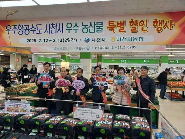 [아시아월드뉴스] 사천시 관내농협과 사천시농업기술센터가 2월 13일부터 16일까지 4일간 서원유통 탑마트 진주점에서 우주항공수도 사천시 우수 농산물 특별할인 행사를 개최한다.