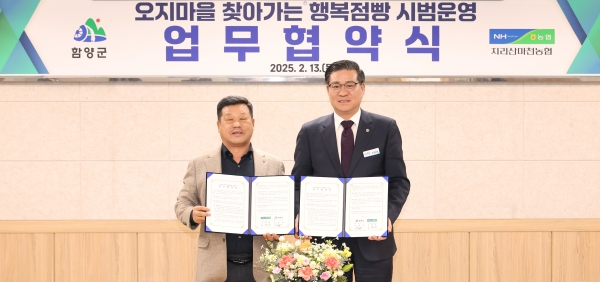 [아시아월드뉴스] 함양군은 13일 오후 군청 소회의실에서 지리산마천농업협동조합과 ‘오지마을 찾아가는 행복점빵’ 시범운영을 위한 업무협약식을 체결했다.