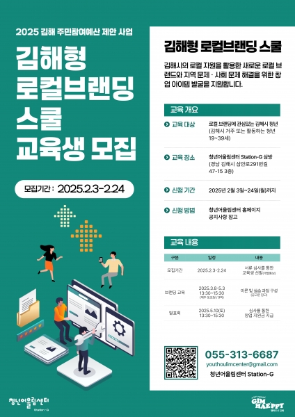 [아시아월드뉴스] 김해시는 오는 2월 24일까지 ‘김해형 로컬 브랜딩 스쿨’ 상반기 교육생 15명을 모집한다고 14일 밝혔다.