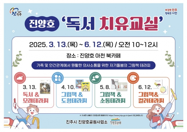 한편 ‘진양호 독서 치유교실’은 2023년부터 사진, 영화, 푸드, 에니어그램, 공예, 하브루타 등 다채로운 미디어와 그림책을 연계해 참여자들의 뜨거운 호응을 받고 있다.