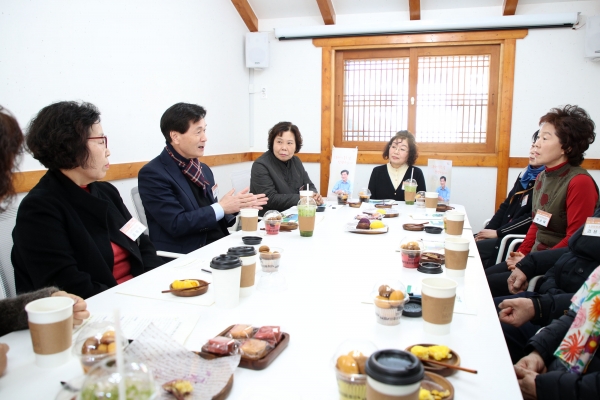 이날 만남은 노인 복지 서비스와 양질의 노인 일자리 확대 방안 등에 대한 아이디어와 의견을 수렴하기 위해 진장올래 카페에 근무하는 노인 일자리 사업 참여자들과 소통의 시간을 가졌다.