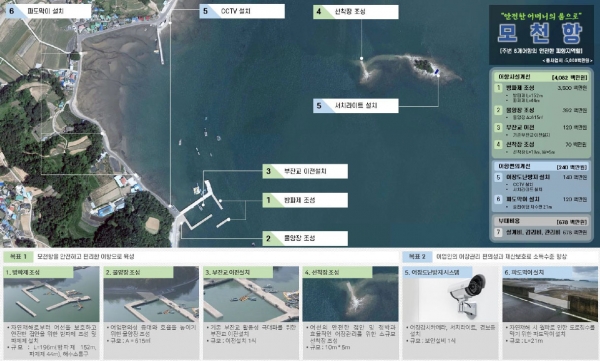 남해군은 모천항 어촌신활력증진사업 추진을 위해 2023년부터 2025년까지 국비 35억원을 포함한 총 50억원의 사업비를 투입해 △방파제 연장 △물양장 및 살개섬 선착장 조성 △어장도난방지 시스템 조성 △파도막이 설치 공사 등을 진행할 예정이다.
