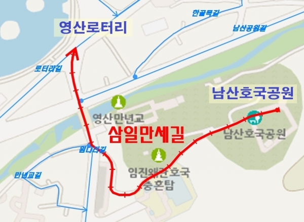 군은 영산 3·1독립운동기념비가 있는 남산호국공원에서 영산로터리까지의 도로구간을 ‘삼일만세길’로 명명했다고 20일 밝혔다.