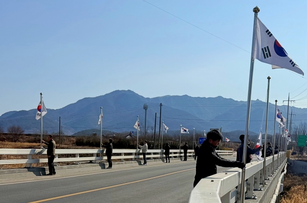 이날 캠페인은 대지교 도로변에서 대지면 이장협의회, 면 직원 등 20여명이 참석한 가운데 진행됐으며 국기 게양대에 태극기 22개를 직접 게양하는 퍼포먼스를 선보였다.