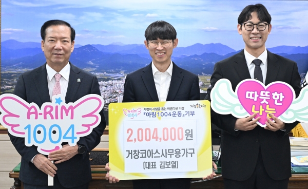 [아시아월드뉴스] 거창군은 지난 24일 각계각층에서 어려운 이웃들에게 희망을 전하는 ‘아림1004 운동’에 동참하며 따뜻한 나눔을 이어가고 있다고 밝혔다.