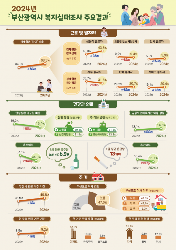 [아시아월드뉴스] 부산시는 부산연구원과 함께 복지정책 수립을 위한 실증적 기초자료 확보를 위해 진행한 ‘2024년 부산시 복지실태조사’ 결과를 공표했다.