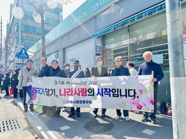 [아시아월드뉴스] 거제시 행정동우회는 지난 28일 제106주년 삼일절을 맞아 행정동우회 회원 30여명이 참여한 가운데 고현시장을 찾는 시민과 지역주민을 대상으로 나라사랑 태극기 달기 캠페인과 함께 가정용 태극기 나눔 행사를 가졌다.