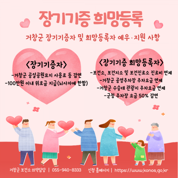 아울러 군 보건소는 직접 방문이 어려운 희망자를 위해 ‘찾아가는 장기기증 희망등록소’를 운영하고 있다.