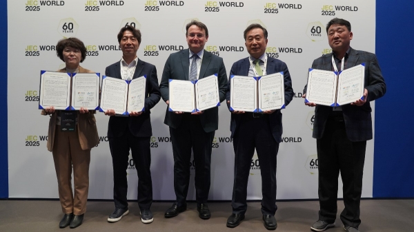 [아시아월드뉴스] 밀양시는 지난 4일 프랑스 파리 노르 빌팽트에서 열리고 있는 세계 최대규모의 복합소재 전시회인‘JEC WORLD 2025’에서 경남도, JEC, 한국탄소나노산업협회, 경남테크노파크와 함께 첨단복합소재산업-나노융합산업 협력 강화를 위한 5개 기관 간 상호 업무협약을 체결했다.