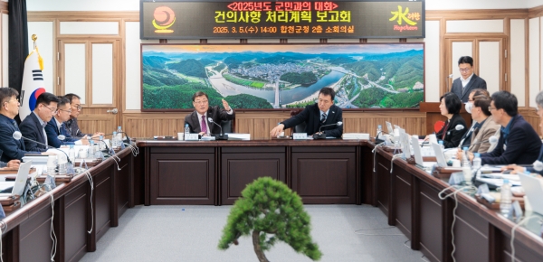 [아시아월드뉴스] 합천군은 5일 군청 소회의실에서 ‘2025년 군민과의 대화’에서 건의된 사항에 대한 처리계획 보고회를 개최했다.