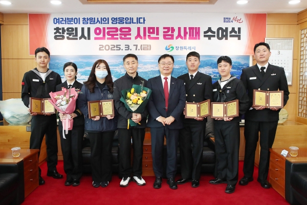 [아시아월드뉴스] 창원특례시는 7일 위급한 상황에서 용기있게 시민의 생명을 구하고 큰 피해를 막은 의인 6명에게 창원시민의 마음을 담아 감사패를 전달했다.