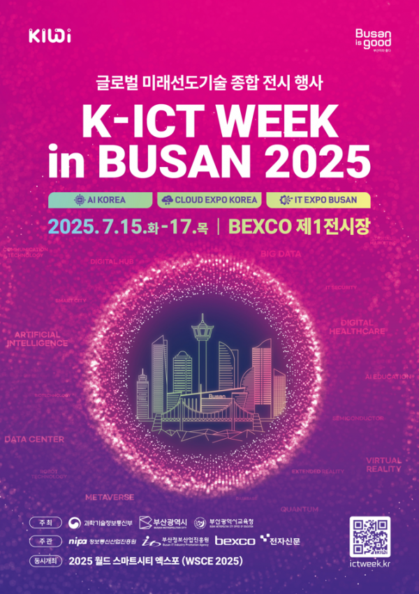 [아시아월드뉴스] 부산시는 오는 7월 15일부터 17일까지 3일간 벡스코 제1전시장에서 ‘2025 K-ICT WEEK in BUSAN’을 개최한다고 밝혔다.