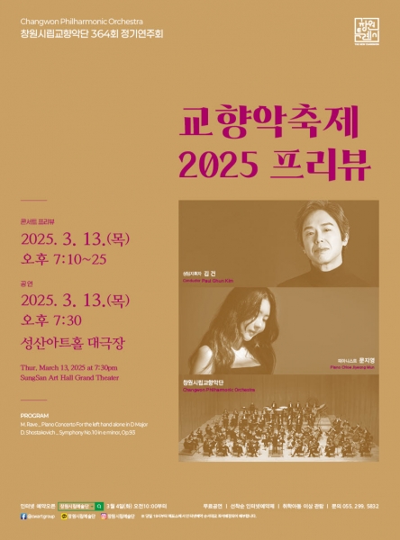 또한 이 공연은 다가오는 4월 1일 서울 예술의전당에서 개최되는 ‘2025 교향악 축제’에 창원시향이 개막공연으로 연주할 프로그램을 미리 만나볼 수 있는 사전 공연이기도 하다.