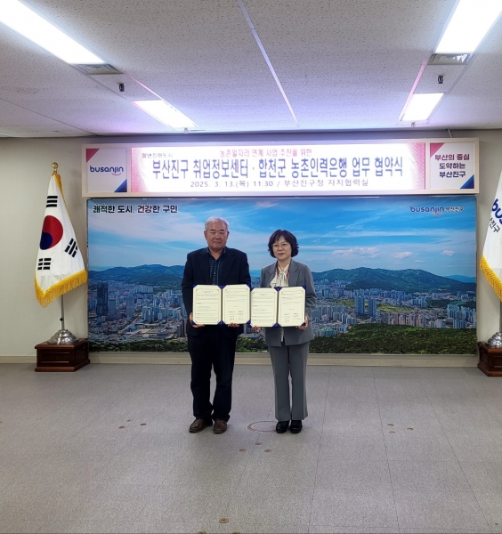 [아시아월드뉴스] 합천군 농촌인력은행 사회적협동조합과 부산진구 취업정보센터는 13일 11시 부산진구청에서 신중년 농촌일자리 연계사업을 위한 업무 협약을 체결했다.