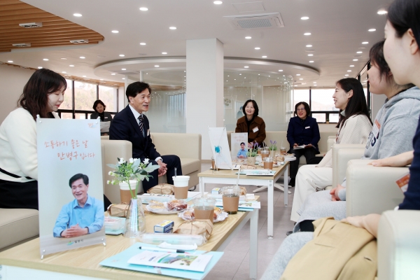 이날 만남은 아이를 낳아 키우기 좋은 지역사회 환경을 만들기 위해 출산 지원 정책과 모자 보건 사업에 대한 아이디어와 의견을 수렴하고자 마련됐으며 올해 출산 예정인 예비 엄마들과 소통의 시간을 가졌다.