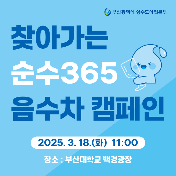 ‘찾아가는 순수365 음수차 캠페인’은 내일 오전 11시부터 오후 2시까지 부경대학교 백경광장에서 진행된다.