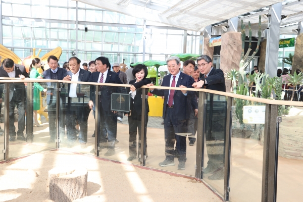 이번에 증축한 생태유리온실은 지방소멸대응기금 20억원을 투입해 881.2㎡ 규모로 사막관과 열대관의 두 가지 테마로 조성해 기존 유리온실의 냉대관, 온대관과 함께 네 곳의 기후대별 생태환경을 학습할 수 있도록 했다.