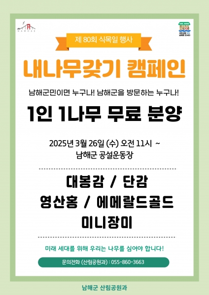캠페인은 남해읍 공설운동장에서 26일 오전 11시부터로 묘목 소진 시까지 진행된다.
