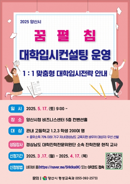 [아시아월드뉴스] 양산시가 대입을 준비하는 학생들을 위해 꿈펼침 대학입시컨설팅 사업을 추진한다.