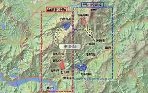 오도산 양수발전소도 쌍둥이 양수발전소라는 이름에 걸맞게 두무산과 동일한 900㎿ 규모의 1조 8,000억원 이상이 투입되는 대규모 국책사업이다.
