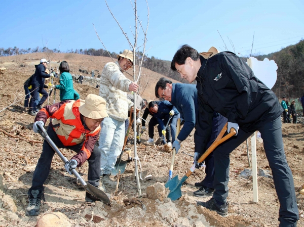 이날 행사에는 안병구 밀양시장을 비롯해 공무원 및 지역 주민 등 250여명이 참여해 산수유, 벚나무 3,000여 그루를 심었다.