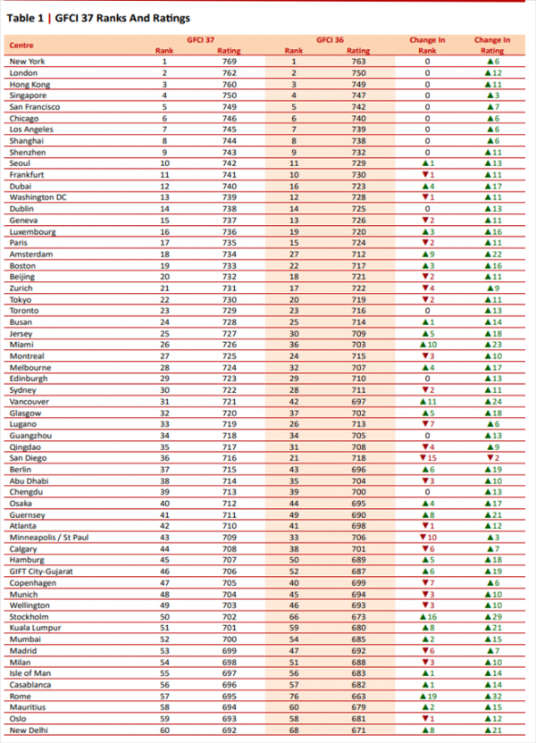 영국 글로벌 싱크탱크 컨설팅그룹 지옌사는 전 세계 119개 도시를 분석한 ‘국제금융센터지수 37차 보고서’를 한국 시간으로 어제 오후 6시에 발표했다.