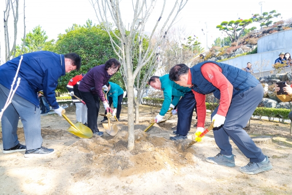 이날 행사에는 조근제 함안군수를 비롯해 이만호 함안군의회 의장, 지역주민 및 공무원 등 100여명이 참여했으며 무궁화와 영산홍을 식재했다.