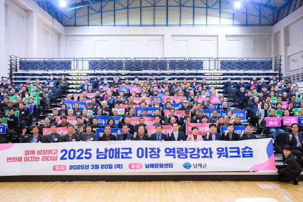 [아시아월드뉴스] 남해군은 지난 20일 남해문화센터에서 221개 전 마을 이장을 대상으로 ‘2025년 남해군 이장 역량강화 워크숍’을 개최했다.