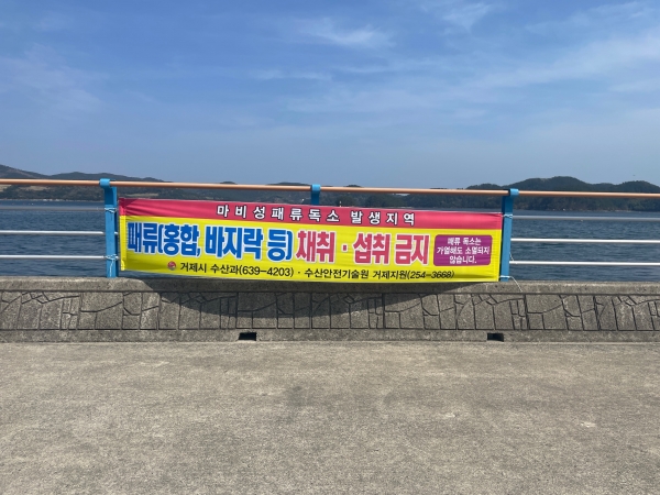 따라서 거제시는 하청면 대곡리 및 장목면 유호리 해역에 대해 패류채취 금지명령을 내렸으며 또한 어업인, 낚시객, 행락객 등이 패류 섭취로 인한 피해를 입지 않도록 해안에 현수막을 게시하고 어업인 등에게 섭취주의를 당부했다.