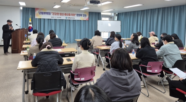 [아시아월드뉴스] 남해군 보건소가 ‘난임부부 한의 치료 지원사업’을 추진하고 있는 가운데, 지난 20일 보건소 정신건강센터 1층에서 임신을 희망하는 가임기 여성을 대상으로 ‘난임부부의 건강한 임신·출산을 위한 한의학 강의’를 개최했다.