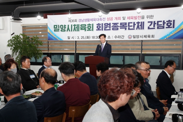 이날 간담회에서는 그동안 밀양 체육 발전을 위해 헌신적으로 노력하고 있는 종목단체장을 격려했다.
