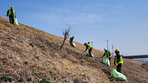 직원 및 마을 주민 50여명이 동참해 △도로 △하천 △저수지 △낙동강 제방 △산책로 △배수로 주변에 무분별하게 버려진 쓰레기를 치우고 방치된 영농폐기물을 수거해 자연환경 사랑을 실천했다.
