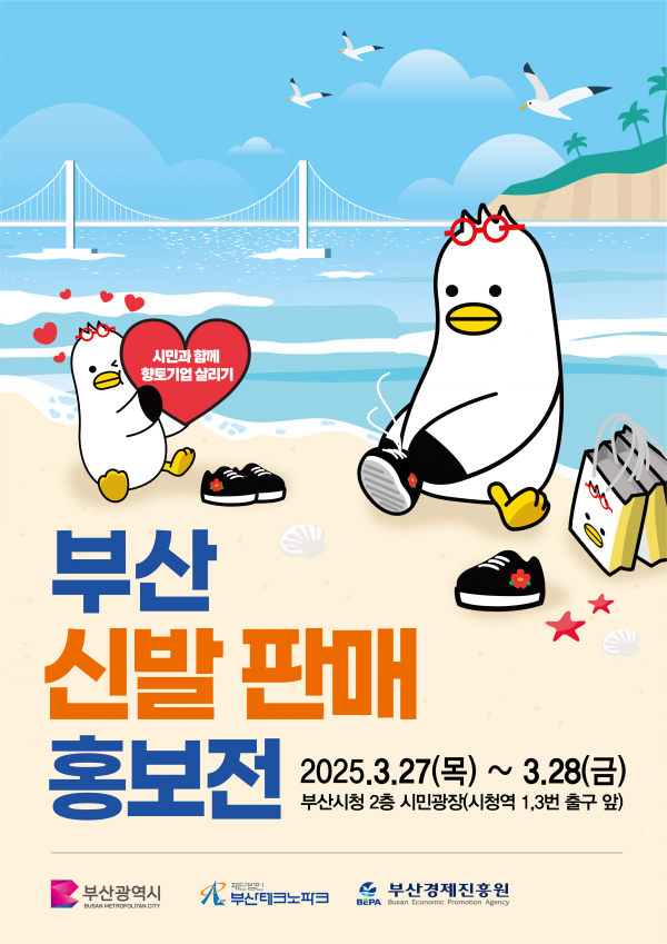 [아시아월드뉴스] 부산시는 오늘부터 28일까지 이틀간 시청 2층 시민광장에서 시민과 함께하는 ‘부산 신발 판매⋅홍보전’을 개최한다고 밝혔다.