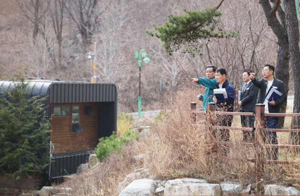 이날 진 군수는 관련 부서장의 보고를 받은 후 겨울철 시설관리 현황과 신규로 조성 중인 야영장 캠핑사이트 공사 현장, 휴양림 객실 등 현장을 직접 둘러보며 꼼꼼히 점검했다.