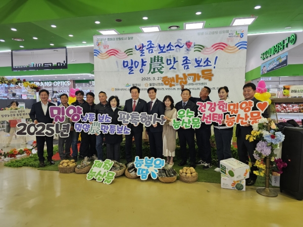 [아시아월드뉴스] 밀양시는 지난 27일 밀양시조합공동법인과 함께 하나로마트 양재점, 창동점에서 ‘2025 봄맞이 밀양 농산물 통합 특판전’을 진행했다고 밝혔다.