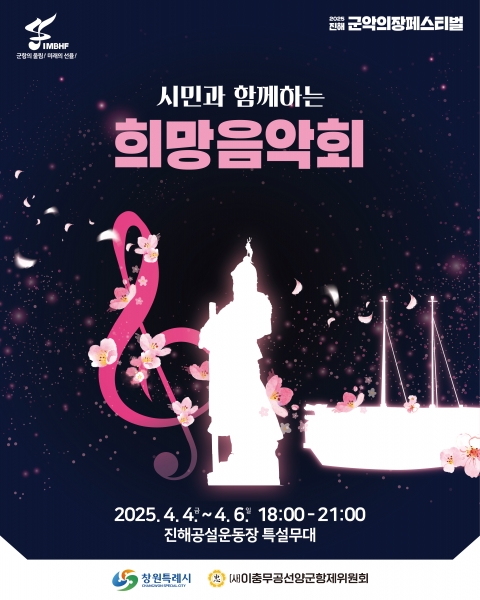 한편 ‘시민과 함께 하는 희망 음악회’는 무료로 진행되며 자세한 사항은 진해군항제 앱을 통해서 확인할 수 있다.