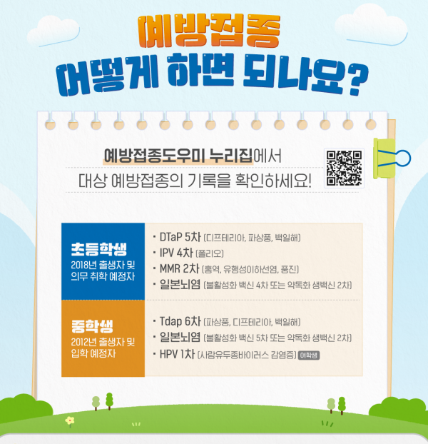 초등학교 입학생은 4종, 폴리오, 홍역·유행성이하선염·풍진, 일본뇌염 백신), 중학교 입학생은 3종, 일본뇌염 백신, HPV)이 확인 대상 항목에 포함된다.