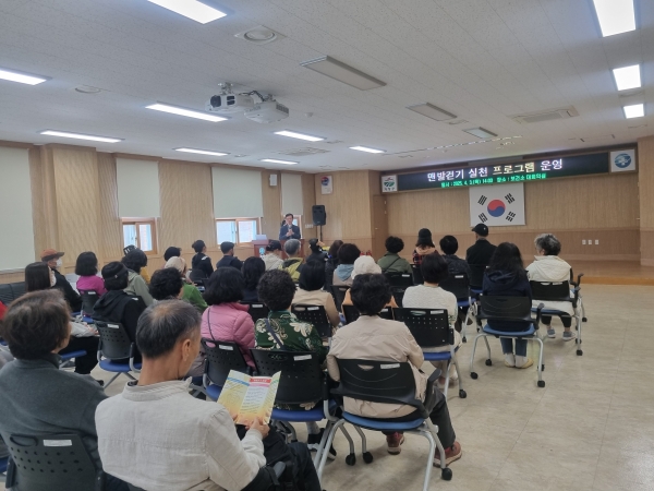 [아시아월드뉴스] 거창군은 지난 3일 보건소 대회의실에서 참여자 40명이 참석한 가운데 ‘맨발걷기 실천 프로그램’의 첫 수업을 진행했다.