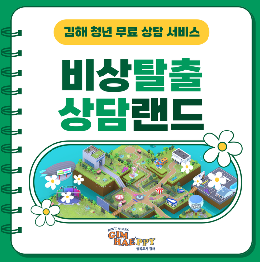 김해청년다옴을 모티브로 한 가상 상담창구인 비상탈출 상담랜드는 △상담센터 △정보센터 △어드벤처존 등 전문 상담 서비스와 재미 요소를 결합한 다양한 콘텐츠로 운영된다.