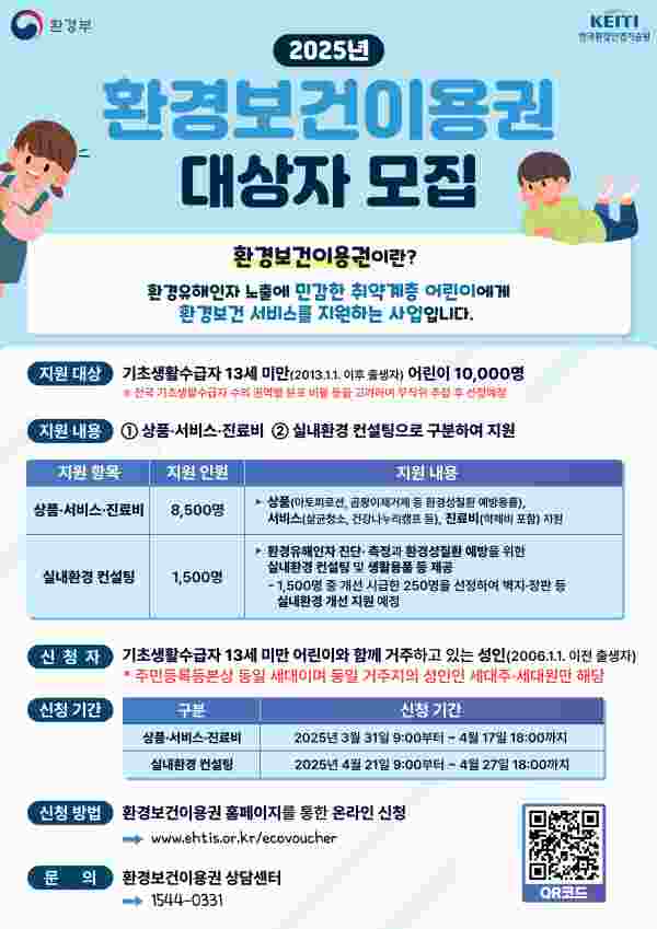 신청 기간은 상품·서비스·진료비 3월 31일~4월 17일 실내환경 컨설팅 4월 21일~4월 27일이며 각각 모집인원은 8500명, 1500명이다.