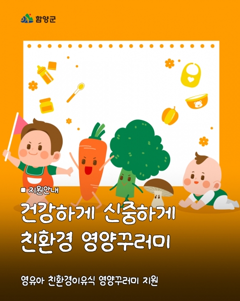 이에 함양군에서도 건강한 미래를 위한 첫걸음을 시작하는 관내 영유아를 대상으로 ‘영유아 친환경 이유식 영양꾸러미 지원사업’을 4월부터 본격 시행한다.
