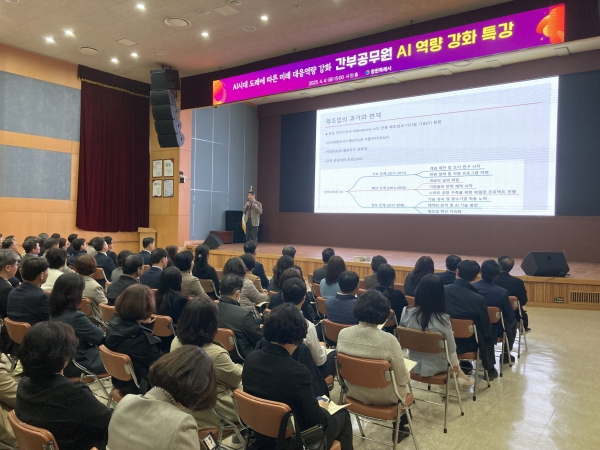 홍순영 자치행정국장은 “이번 특강을 통해 간부 공무원들이 인공지능과 디지털 전환 시대에 대한 통찰력을 키우는 계기가 됐다”며 “앞으로도 관리자의 미래 대응 역량과 조직관리 능력 강화를 위해 다양한 주제의 교육을 실시할 예정”이라고 밝혔다.