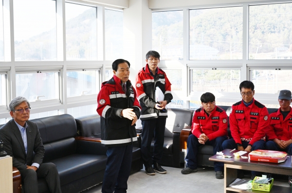 [아시아월드뉴스] 창녕군 성낙인 군수가 지난 7일 창녕군산불대응센터를 방문해 산불진화대원들을 찾아 위로하고 노고를 격려했다.