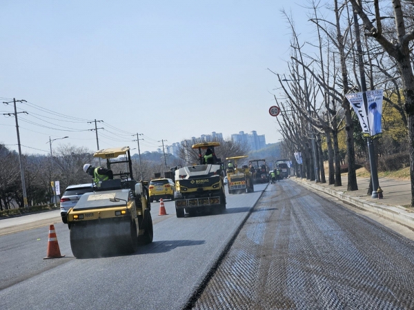 특히 겨울철 제설작업으로 인한 도로 균열, 포트홀, 소성변형 등 불량 노면 구간에 대해 5cm 절삭 후 아스콘 재포장을 통해 차량 통행 불편을 최소화할 계획이다.