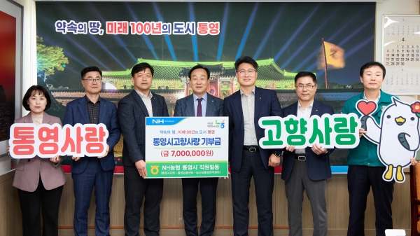 이번 기부에는 NH농협 통영시지부·통영금융센터·농신보통영권역센터 임직원들이 참여했으며 농협에서는 2023년부터 2025년까지 3년간 고향사랑기부금으로 2000만원을 통영시에 기탁했다.