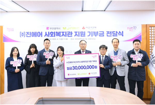 전달식에는 시 사회복지국장, 진홍 진에어 부산여객지점장, 김경희 사회복지공동모금회 중앙회 사회공헌본부장 등이 참석했다.