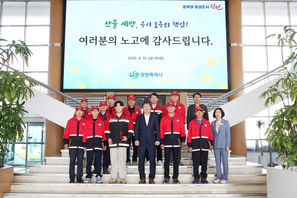 장금용 창원특례시장 권한대행은 “최근 전국 각지에서 발생 중인 봄철 산불로 큰 피해가 이어지고 있다”며 “어려운 여건 속에서도 산불 진화에 힘써주신 직원들과 진화대원 여러분께 감사드리며 앞으로도 산불 예방과 대응에 총력을 다하겠다”고 밝혔다.