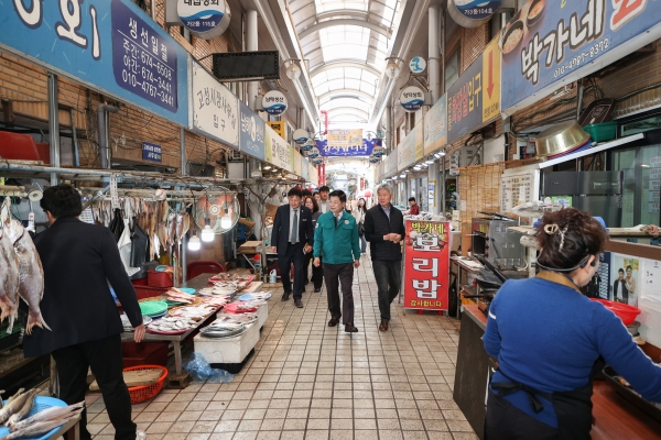 이상근 군수는 시장 내 주요 상가를 일일이 찾아가 상인들과 대화를 나누고 영업환경과 고객 흐름, 매출 변화 등 실질적인 경영 상황을 확인했다.