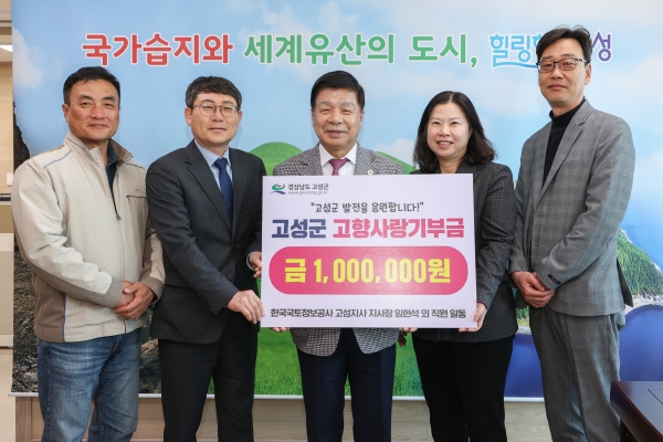 [아시아월드뉴스] 고성군은 4월 15일 한국국토정보공사 고성지사와 직원들이 고향사랑기부금 100만원을 기탁했다고 밝혔다.