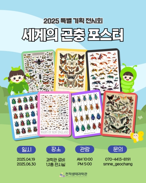 [아시아월드뉴스] 거창천적생태과학관이 2025년 4월 19일부터 6월 30일까지 특별 기획전 ‘세계의 곤충 포스터’ 전시회를 개최한다.